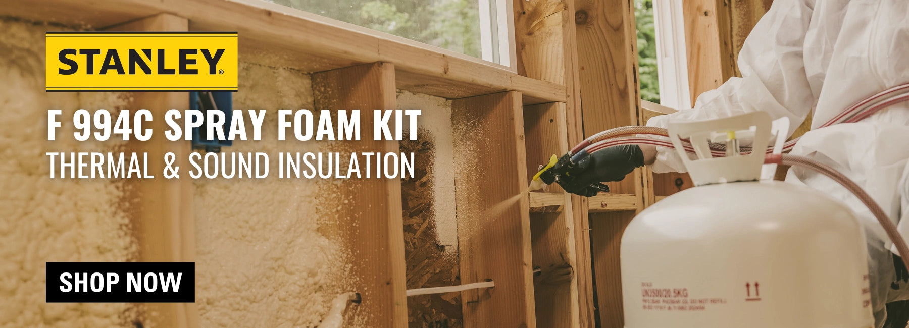 Stanley F994C Supercoat Canister Spray Foam Kit is a high-performance, two-component closed-cell polyurethane foam solution designed for profession...