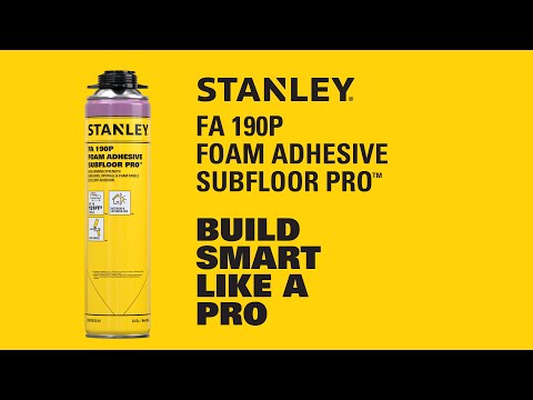 Stanley FA190P subfloor adhesive is a one-component, premium polyurethane foam formulated for floor joists, subflooring, trusses, particle board, OSB, and decks. This contractor-grade subfloor glue delivers superior adhesion to lumber, plywood, concrete, metals, and masonry, even when substrates are slightly damp or frozen, and helps reduce nail pops, callbacks, and floor squeaks.